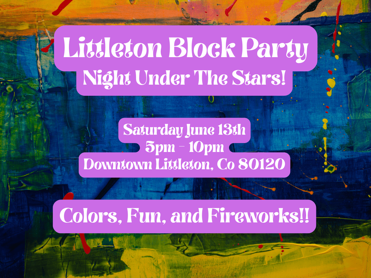 Experience Music, Magic, and Mayhem for a one of a kind night under the stars at the 2026 Littleton Block Party! There will be street performers, food, drinks, music, your favorite local artists, and more! Don’t forget to join for the firework finale at 9pm and rock a Tie Dye that is just as explosive!